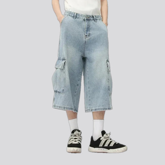Medium-wash high-waist jeans shorts for men