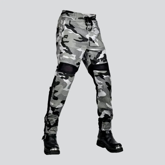 Camouflage-printed distressed men's jeans