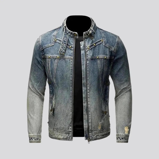 Slim fit vintage distressed men's denim jacket