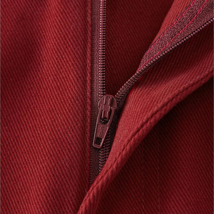 Trendy Colored High Waist Denim Skirt - Red