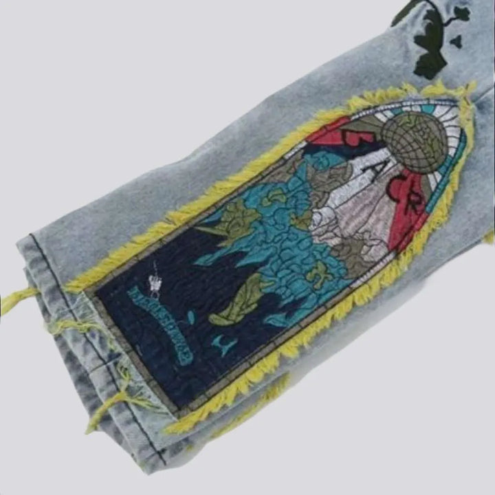 Introducing our 2023 Autumn Collection straight men's mid-waist jeans a modern take on the timeless boho style! Crafted with unique distressed detailing, zipper & button closure, and embroidery, these jeans guarantee to make a bold statement.