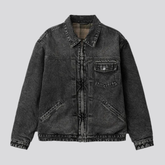 Black winter men's denim jacket