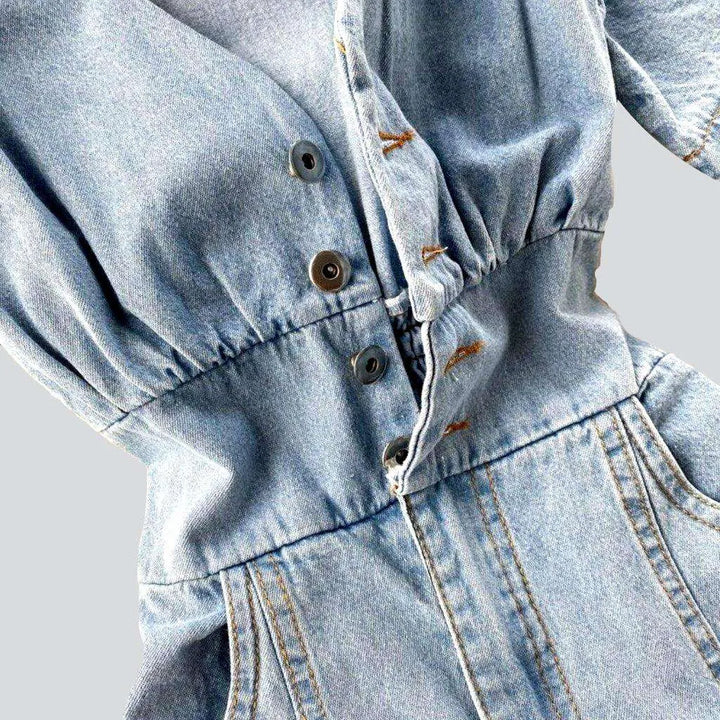 Step out in confidence and style with this stunning jeans dress. Its blend of street-style flair and light wash pattern make it an ideal choice for those looking to stand out. Pair it with your favorite sandals or heels, and accessorize with bold jewelry to complete your look. Perfect for day parties, evening soirees, or a laid-back brunch, this dress is as versatile as it is stylish. Don't miss out on elevating your wardrobe – add this fabulous jeans dress to your collection today and embrace the season with unparalleled chicness!