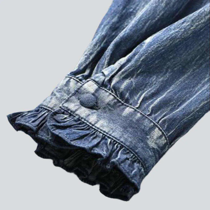Designed with the modern woman in mind, this cotton denim dress offers a seamless blend of style and comfort, making it the go-to choice for spring and summer parties. The aged pattern gives it a touch of nostalgic allure, effortlessly fusing street and vintage aesthetics into one elegant ensemble.